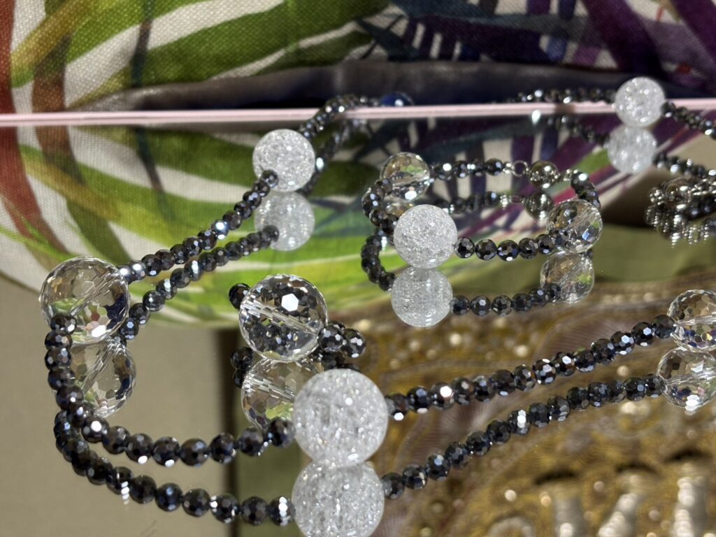 22mm128面カットクリスタル&crackクリスタル80cmネックレス・ブレスレット・リング3点セット